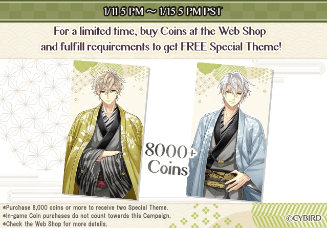 | Buy 8000+ Coins and get Ieyasu and Mitsuhide Special Theme for FREE! |